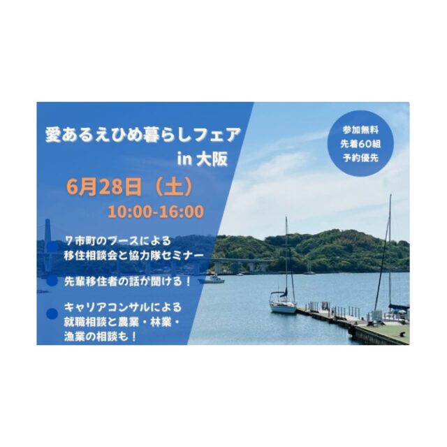 【関西で対面相談】愛あるえひめ暮らしフェア in 大阪 開催日:2025年6月28日(土) 仕事・住まい・暮らしをまるごと相談! 海・山・島・街、多様なライフスタイルが実現できる愛媛県。 温暖な気候、豊かな自然や子育て環 […]
