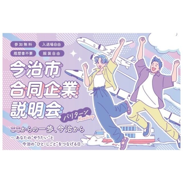 〜今治市主催合同企業説明会 参加者募集のお知らせ〜 今治市では、2025年9月13日(土)にテクスポート今治にて合同企業説明会「バリターン・ミーティング」を開催します! 今治市内の企業40社(予定)が出展し、直接対面式で […]