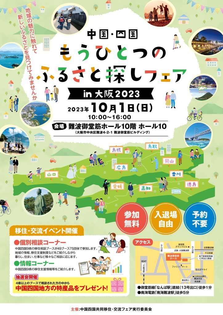 10月1日(日)に中国四国9県が共同で開催する「中国四国もうひとつのふるさと探しフェアin大阪2023」に愛媛県が出展します。