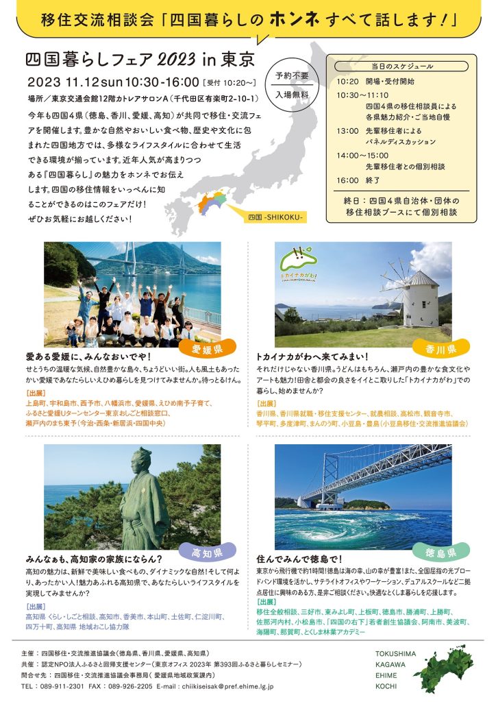 主催 :四国移住・交流推進協議会(徳島県、香川県、愛媛県、高知県)
