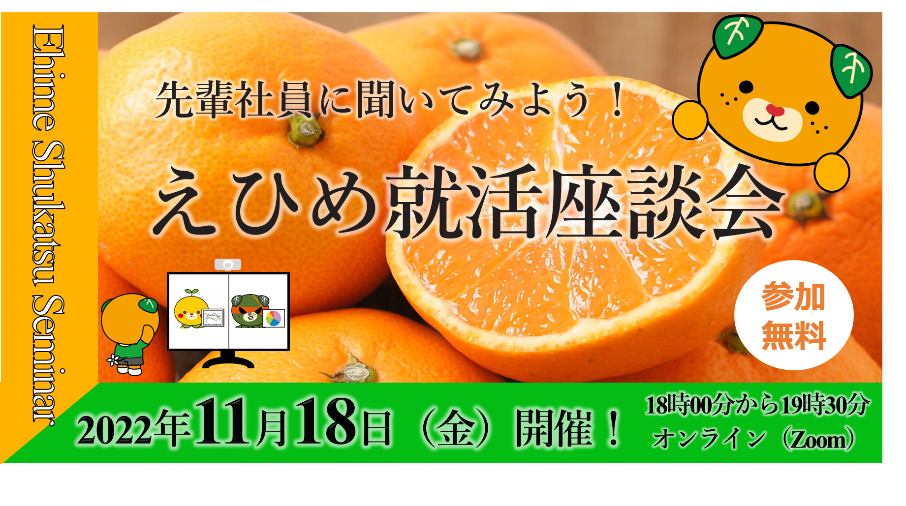首都圏等から愛媛県でのUIターン就職を検討している学生の皆さんを対象に、就活座談会をオンラインで開催します!