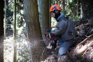自然豊かな愛媛県で林業はいかがでしょうか?チェンソーの擬似体験ができるVRで林業を体感してみてください。
